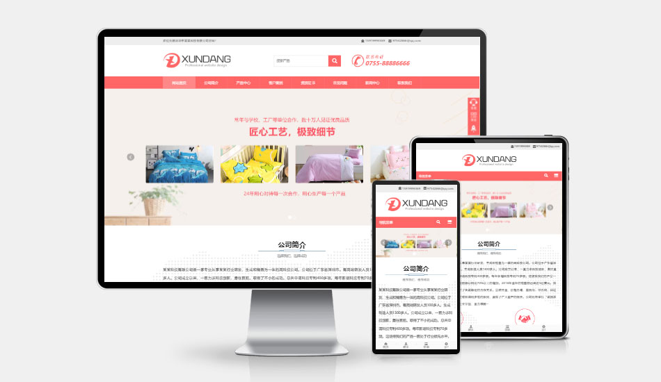 中文 家居家纺,被子枕头,服装 H5自适应网站