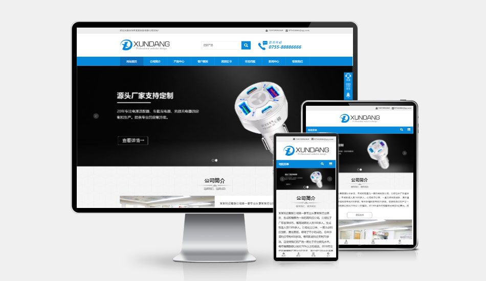 中文 H5自适应 电子产品、车载充电器、汽车配件 高端营销型网站模板