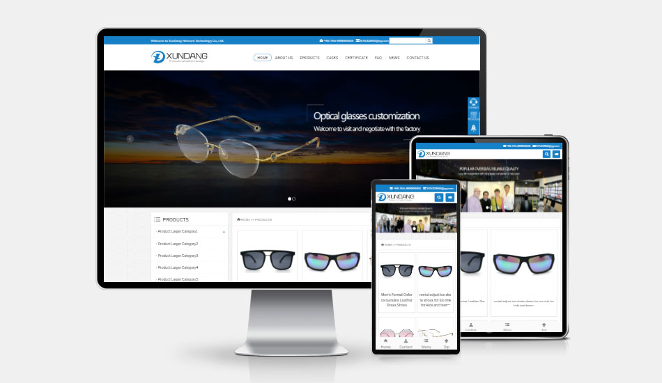 英文 眼镜配饰、五金塑胶 H5自适应网站